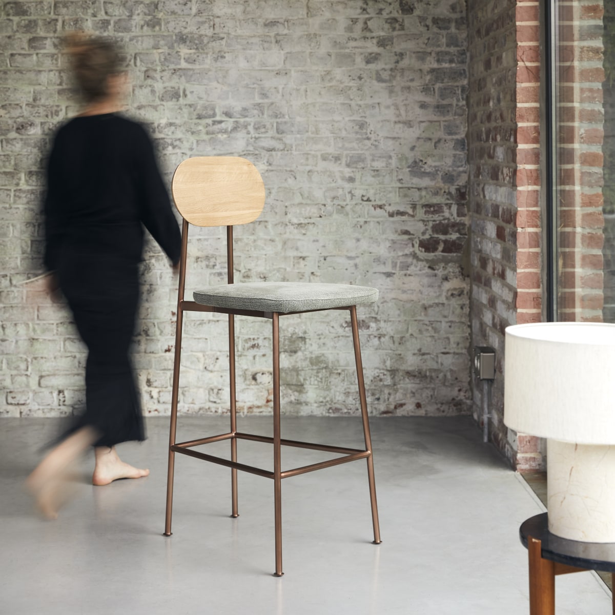 - Fußgestell aus gebürstetem Kupfer: warm und leuchtend