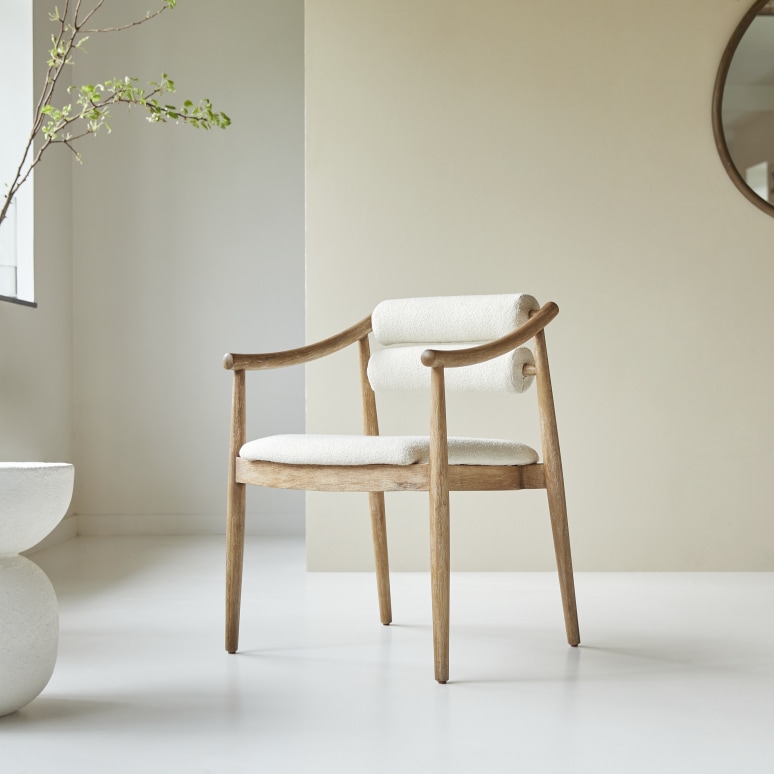 Sessel aus massivem Akazienholz und Boucléstoff –
