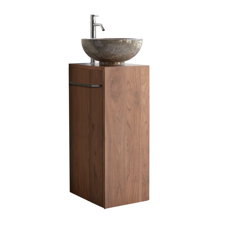 Waschtisch-Unterschrank aus massivem Nussbaumholz links