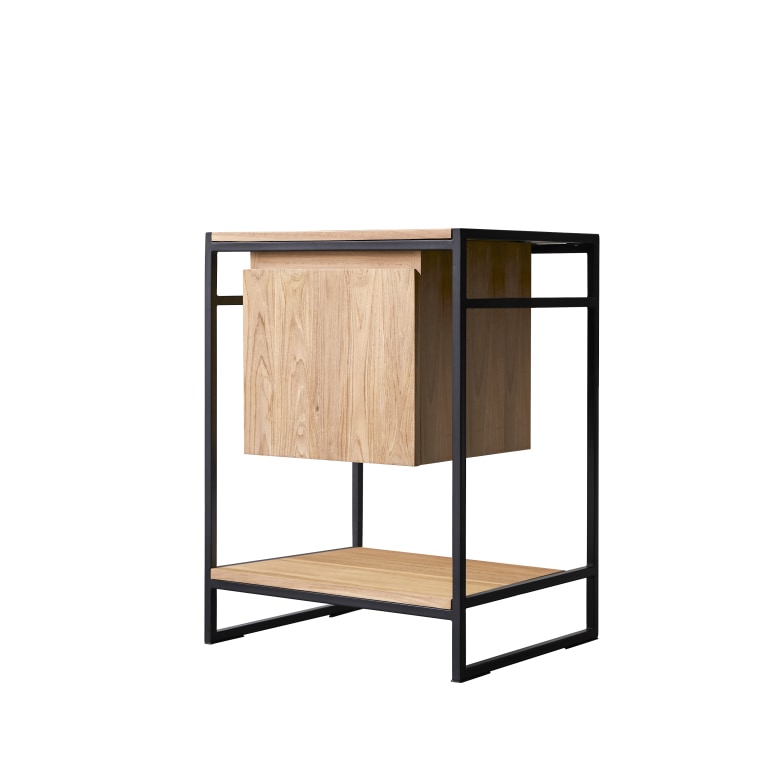 Waschtischunterschrank aus massivem Teakholz und Metall 60 cm