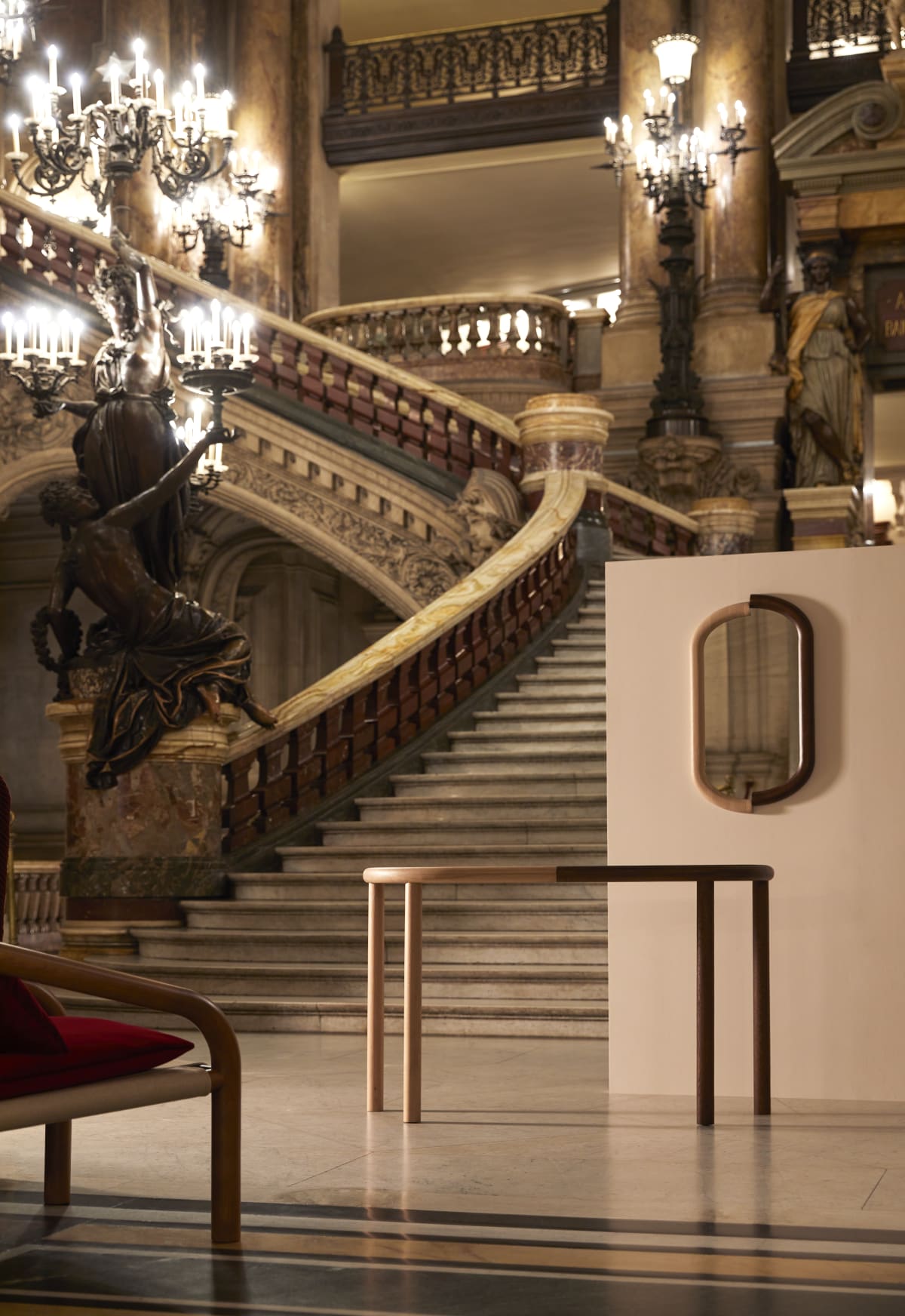 Jedes Möbelstück verkörpert das Wesen der Oper und spiegelt die Eleganz des Opernhauses Garnier sowie die Modernität des Opernhauses Bastille zugleich wider. Als wahrhafte Hommage an dieses künstlerische Erbe symbolisiert diese Kollektion aus geschreinertem Massivholz für Langlebigkeit, Prestige und Noblesse. Die zeitlosen Linien werden Generation für Generation begeistern.
