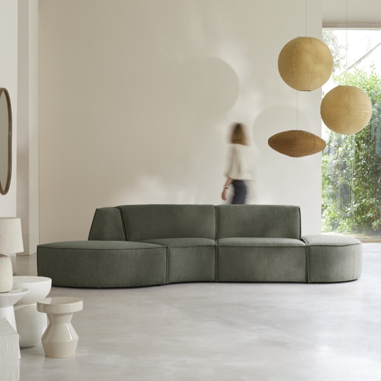 Banquette modulable en tissu vert, 4 places
