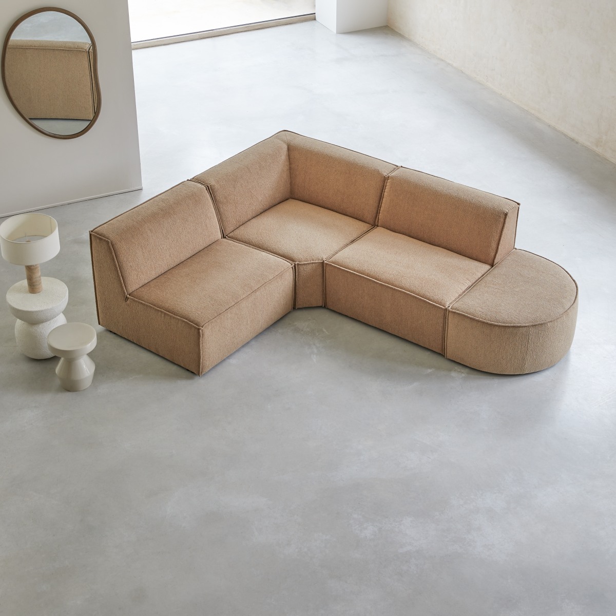 Canapé d'angle modulable en tissu camel, 4-5 places
