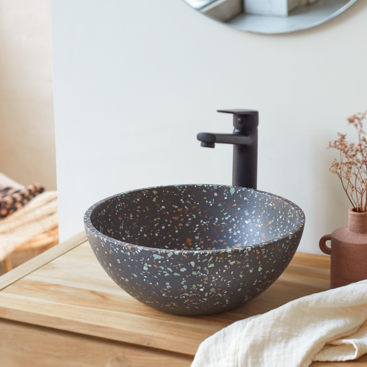Vasque ronde en terrazzo confetti